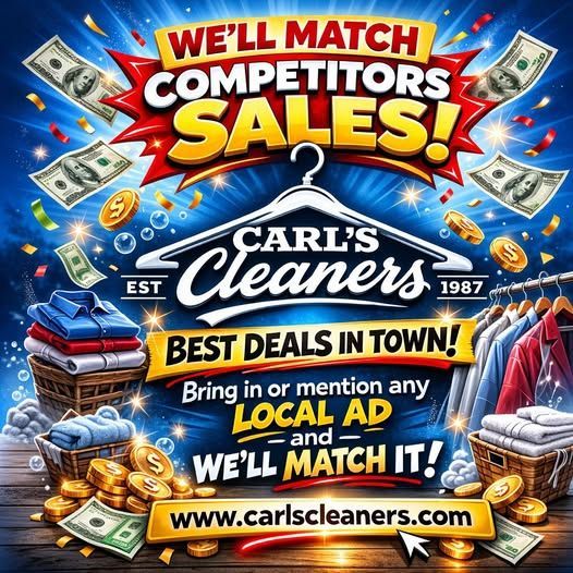 Bring us any of our local competitors coupons or sales and we will match that price. Let us know at time of drop off and we will match the price.